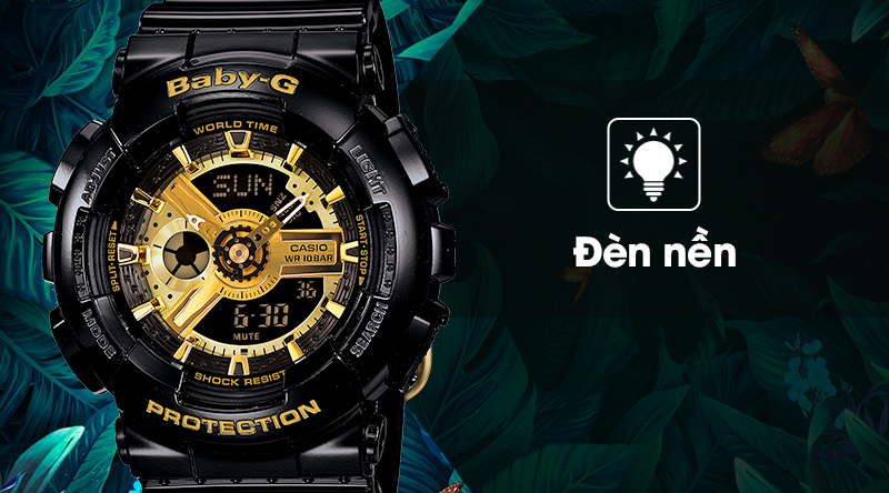 Đồng hồ nữ Baby-G BA-110-1ADR được trang bị đèn nền sáng rõ giúp xem giờ trong bóng tối