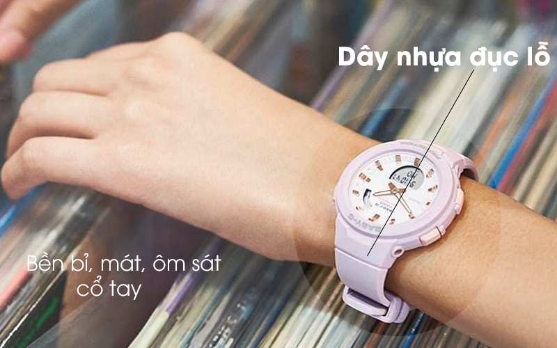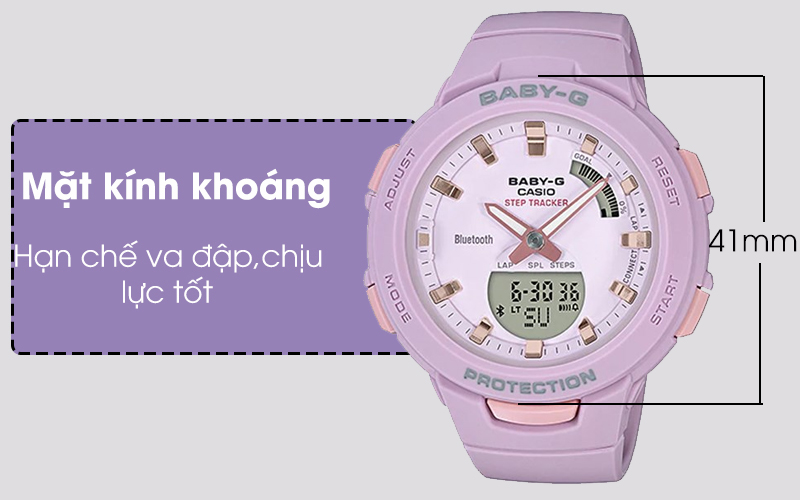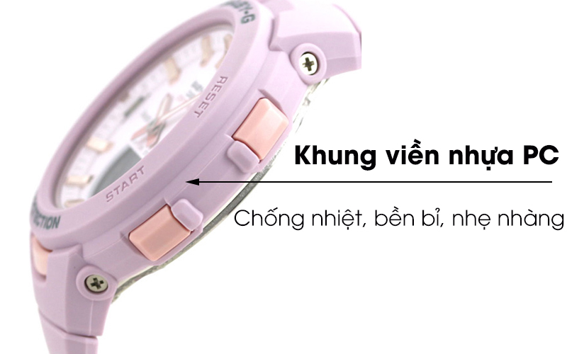 Với thiết kế khung viền bằng nhựa PC, đồng hồ nữ Baby-G BSA-B100-4A2DR càng nhận được lòng tin của khách hàng về chất lượng mà nó đem lại. Khung viền nhựa PC vừa kháng được hóa chất lại có độ cứng cao, chống va đập, bảo vệ tốt cấu trúc bên trong.