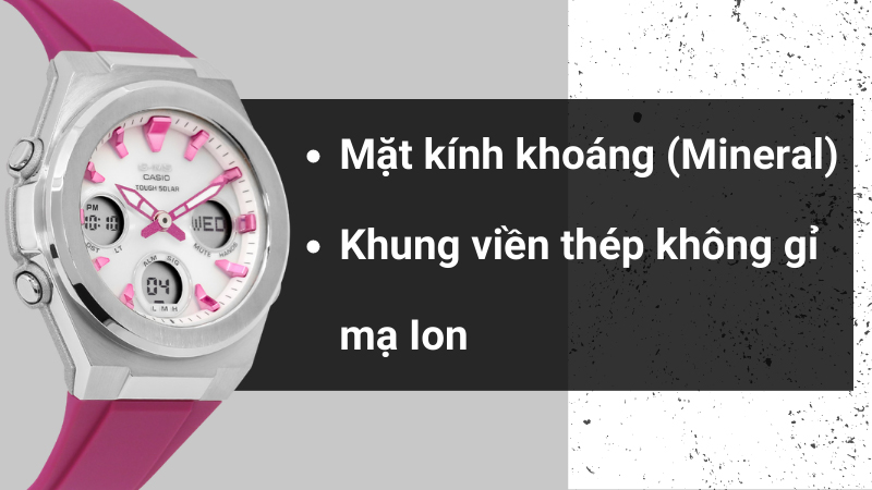 • Tổng thể đồng hồ nữ được thiết kế chắc chắn. Khung viền bằng thép không gỉ mạ Ion, chống va đập tốt, giúp bảo vệ các chi tiết bên trong an toàn. Dây đeo nhựa có độ bền cao, không thấm nước, cho cảm giác dễ chịu khi mang đồng hồ.