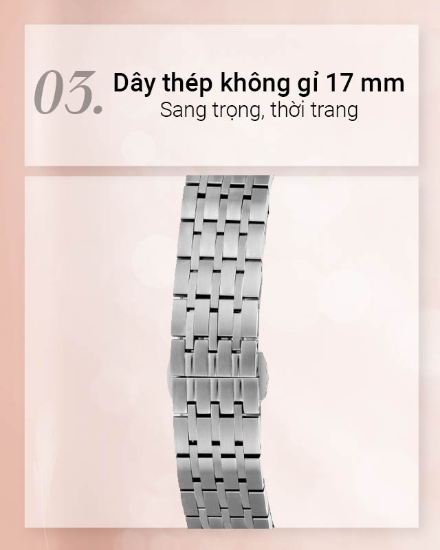 - Mẫu đồng hồ nữ sở hữu đường kính mặt là 34 mm, độ rộng dây 17 mm