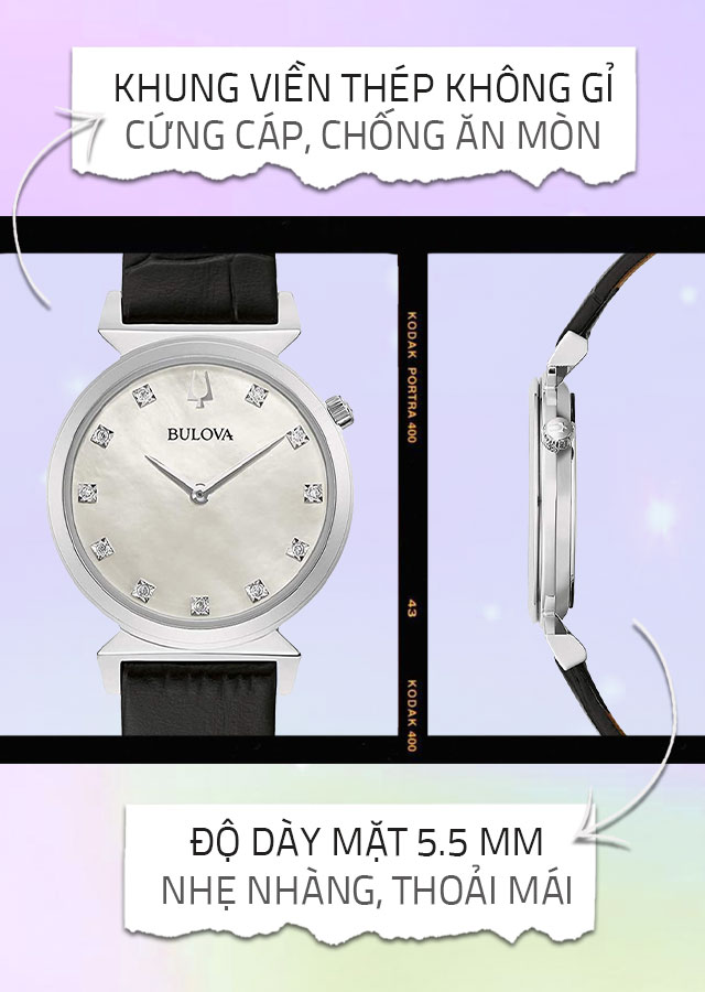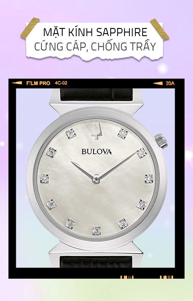 - Sở hữu diện mạo thanh lịch, sang trọng đến từ hãng đồng hồ Bulova, thương hiệu nổi tiếng và uy tín của Mỹ