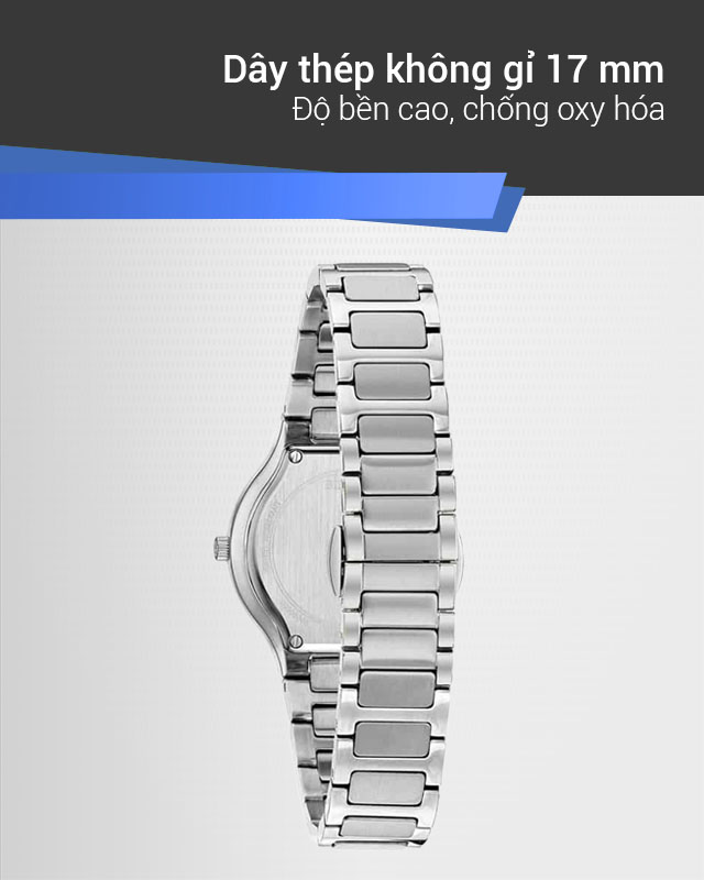 - Khung viền và dây đeo bằng thép không gỉ chắc chắn, sáng bóng, không ngại điều kiện môi trường khắc nghiệt, bền đẹp với thời gian