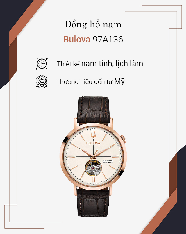 - Sản phẩm mang phong cách cổ điển, sang trọng đến từ hãng đồng hồ Bulova, thương hiệu chất lượng của Mỹ.