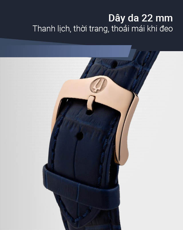 - Chiếc đồng hồ nam này sở hữu đường kính mặt 43 mm, độ rộng dây 22 mm