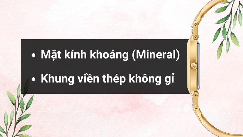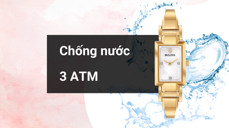 - Được trang bị hệ số chống nước 3 ATM, yên tâm đeo đồng hồ nữ này khi đi mưa và rửa tay. Tuy nhiên, không được mang khi tắm, bơi lội, lặn để bảo vệ tuổi thọ sản phẩm lâu dài