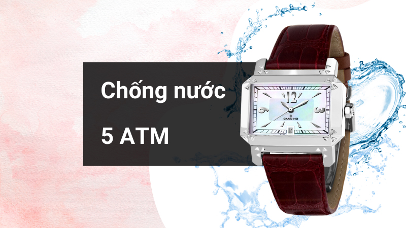 • Hệ số chống nước của mẫu đồng hồ này lên tới 5 ATM: Người dùng thoải mái đeo đồng hồ khi tắm, đi mưa, không mang khi bơi, lặn.
