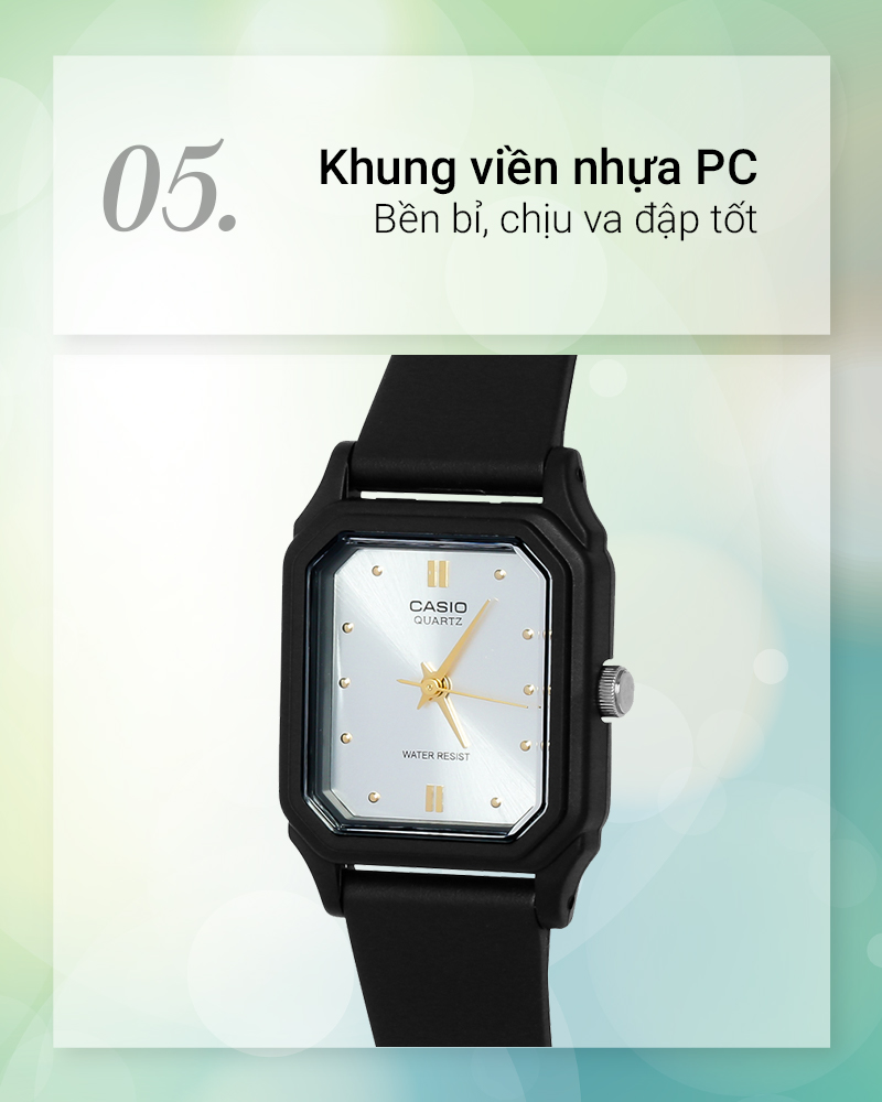 - Khung viền nhựa PC trọng lượng nhẹ nhưng cứng cáp, bảo vệ tốt lõi đồng hồ. Dây nhựa nhẹ nhàng, không thấm nước cho bạn cảm giác thoải mái khi đeo