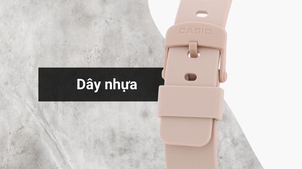 • Tổng thể của chiếc đồng hồ Casio này được chăm chút tỉ mỉ khi dùng nhựa làm chất liệu cho phần khung viền và dây đeo.