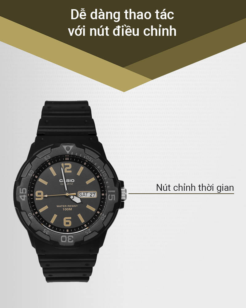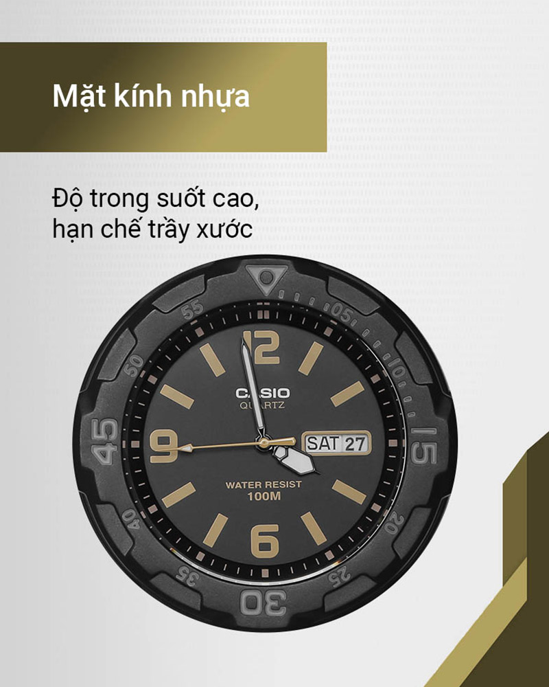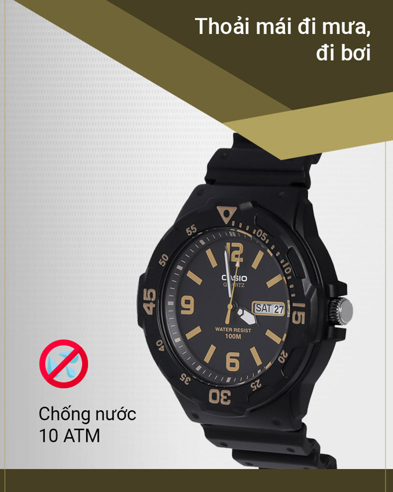 - Hệ số chống nước 10 ATM, chiếc đồng hồ nam an toàn khi bơi lội, tắm, rửa tay hoặc đi mưa. Lưu ý không đeo đồng hồ khi đi lặn