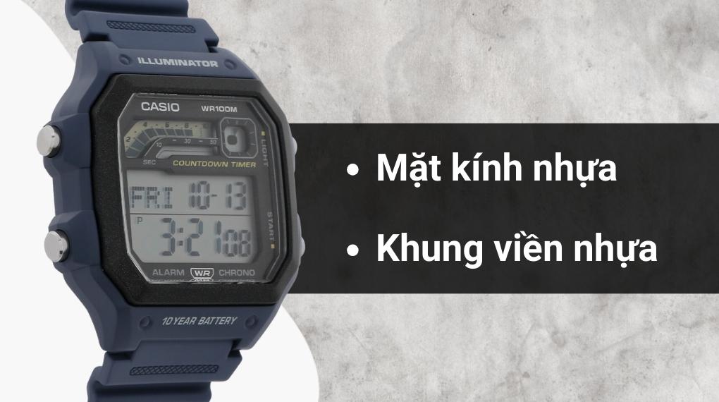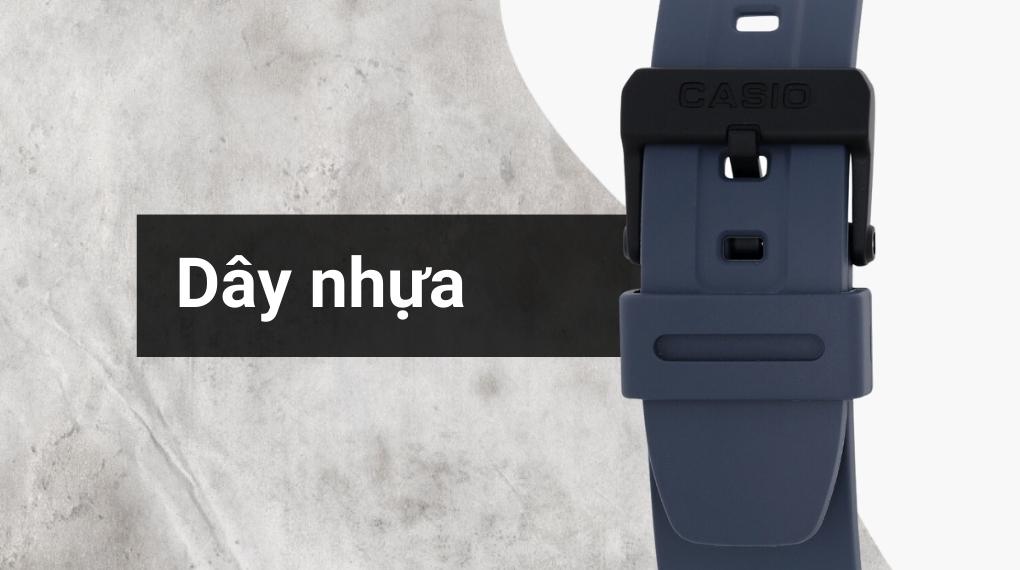 • Nhựa là chất liệu mà hãng đã tinh tế chọn lựa cho khung viền và dây đeo của chiếc đồng hồ Casio này bởi khả năng chống nước, bền bỉ cùng sự nhẹ nhàng mà nó mang lại. Hơn nữa, chất liệu này sở hữu khả năng điều chỉnh linh hoạt vì thế sẽ giúp cổ tay chàng có thể hoạt động thoải mái mà không quá gò bó.