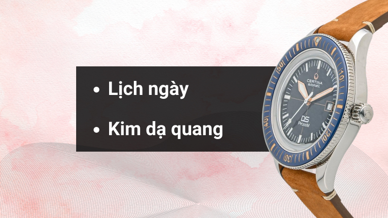 - Mẫu đồng hồ nam của nhà Certina được trang bị thêm ô lịch ngày và kim dạ quang giúp bạn dễ dàng quan sát ở nơi thiếu ánh sáng