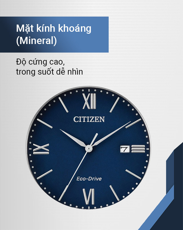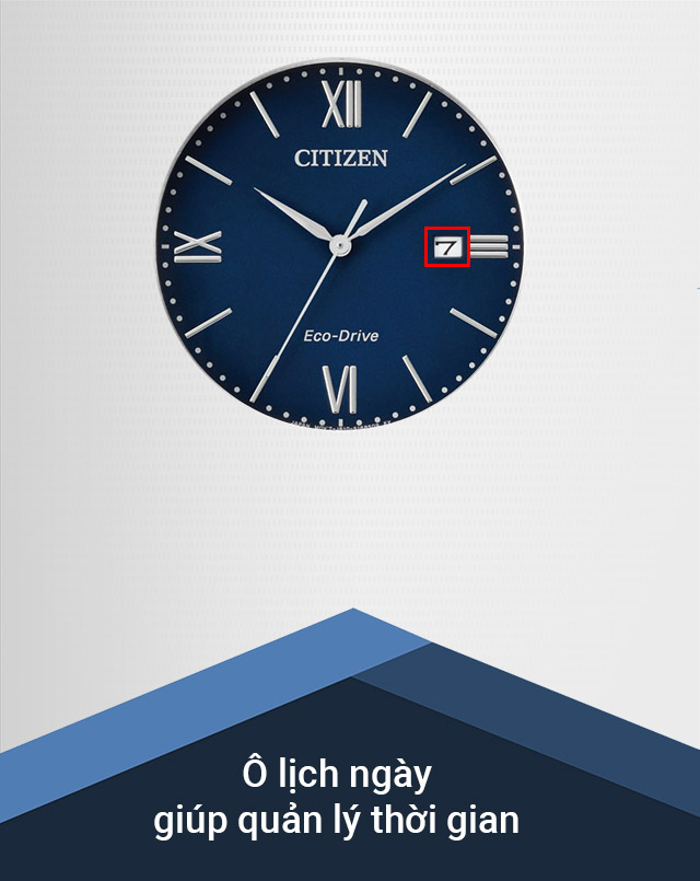 - Trang bị bộ máy Eco-Drive độc quyền của Citizen cho thời lượng pin lâu hơn nhờ khả năng hấp thụ ánh sáng để sạc pin từ đèn cầy, đèn huỳnh quang đến ánh nắng mặt trời
