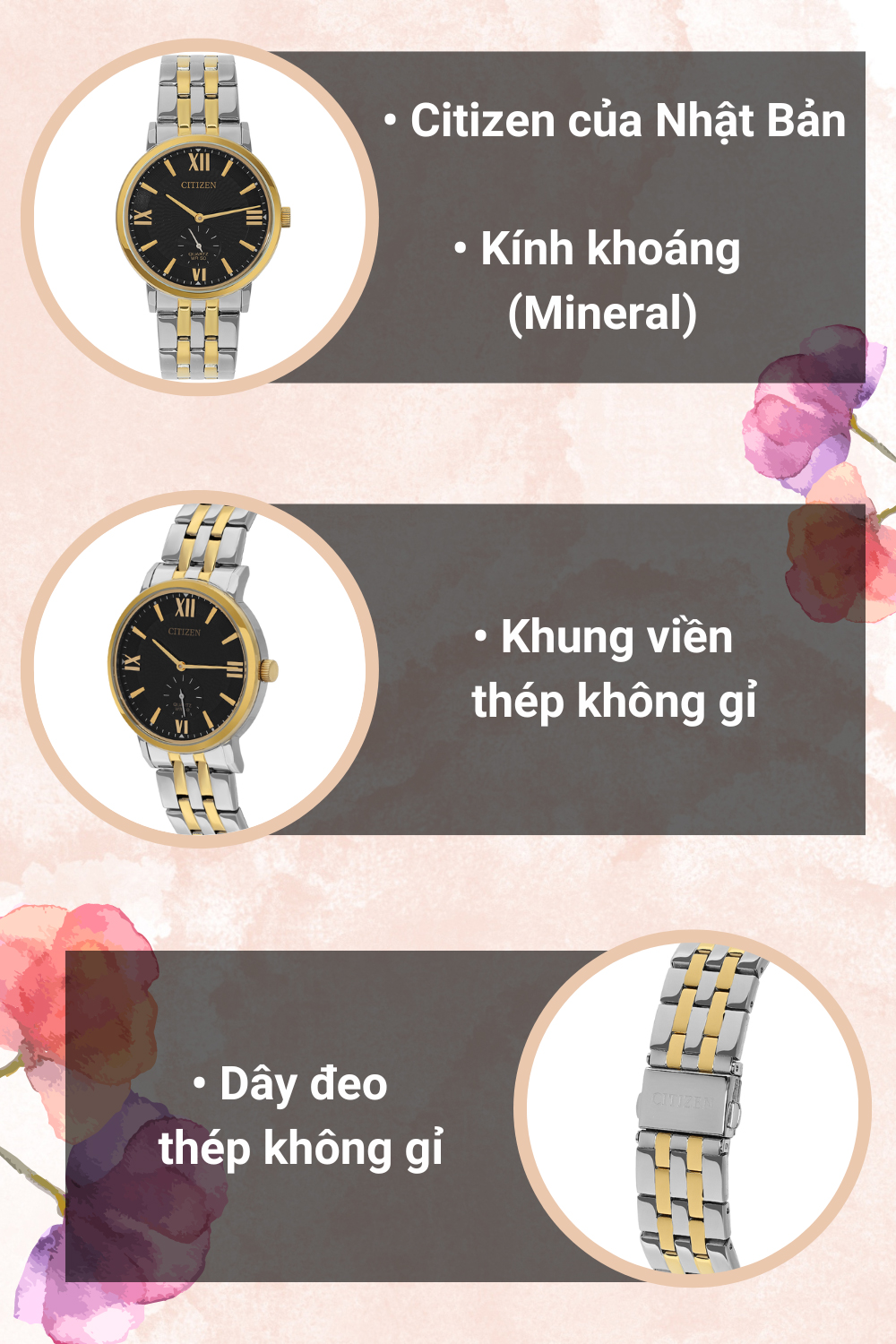 - Với thiết kế thời trang, sang trọng, chi tiết máy hoàn hảo, độ chính xác cao, đồng hồ Citizen luôn đi đầu trong các đột phá về công nghệ và giá cả.