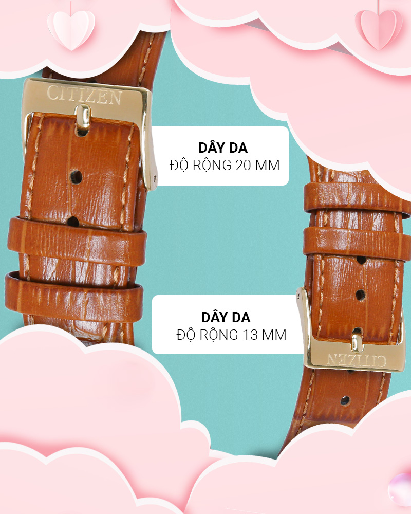 - Đồng hồ nữ sở hữu đường kính mặt 22 mm, độ rộng dây 13 mm