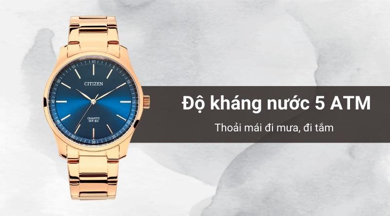 - Chiếc đồng hồ nam này có hệ số chống nước 5 ATM: Yên tâm đeo khi tắm, rửa tay và đi mưa nhỏ. Không mang đồng hồ khi bơi hoặc lặn
