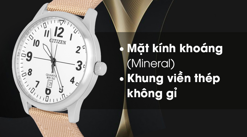 - Mặt kính đồng hồ Citizen nam có độ cứng khá, không lóa mắt khi xem giờ dưới nắng.