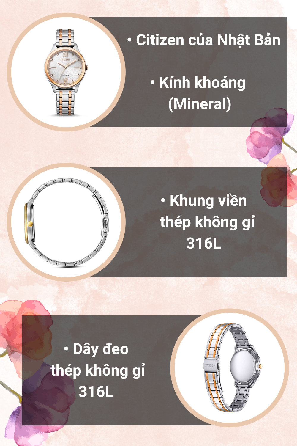 - Với thiết kế thời trang, sang trọng, chi tiết máy hoàn hảo, độ chính xác cao, đồng hồ Citizen luôn đi đầu trong các đột phá về công nghệ và giá cả.