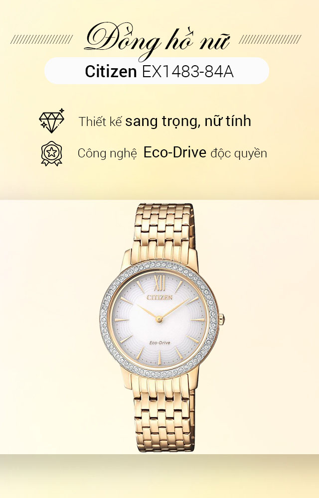 Đồng hồ Citizen EX1483-84A là chiếc đồng hồ nữ của hãng Citizen - một thương hiệu uy tín và nổi tiếng của Nhật Bản.