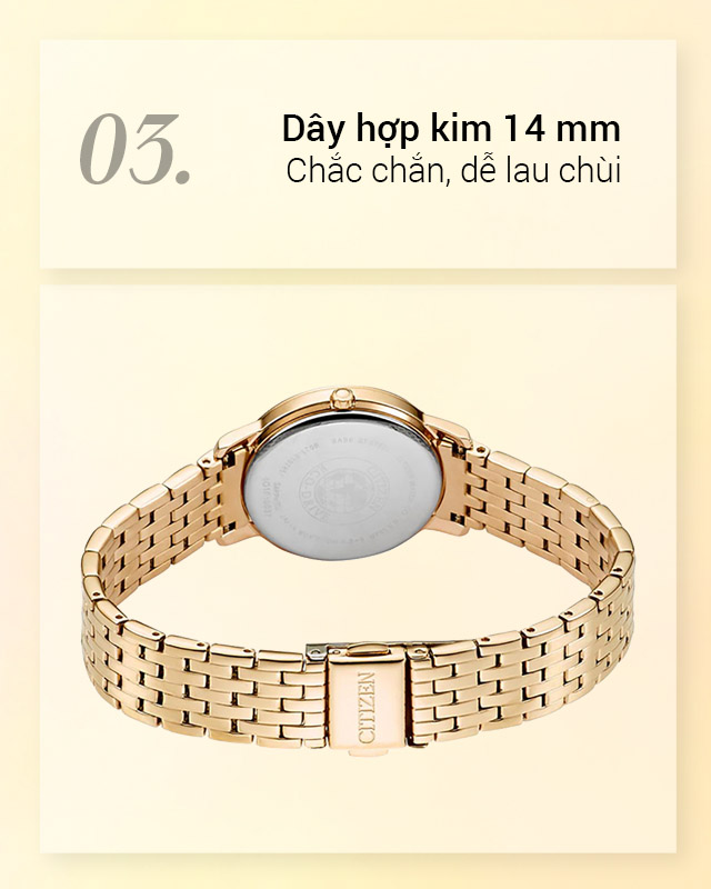 Dây đeo đồng hồ Citizen nữ có độ bền cao, chịu được mọi điều kiện thời tiết, cho bạn cảm giác mát tay khi đeo.