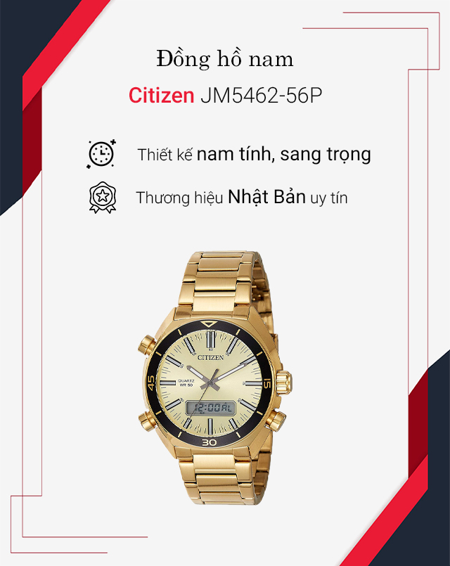 Đồng hồ Citizen JM5462-56P là chiếc đồng hồ nam mang thương hiệu Citizen uy tín và chất lượng của Nhật Bản.