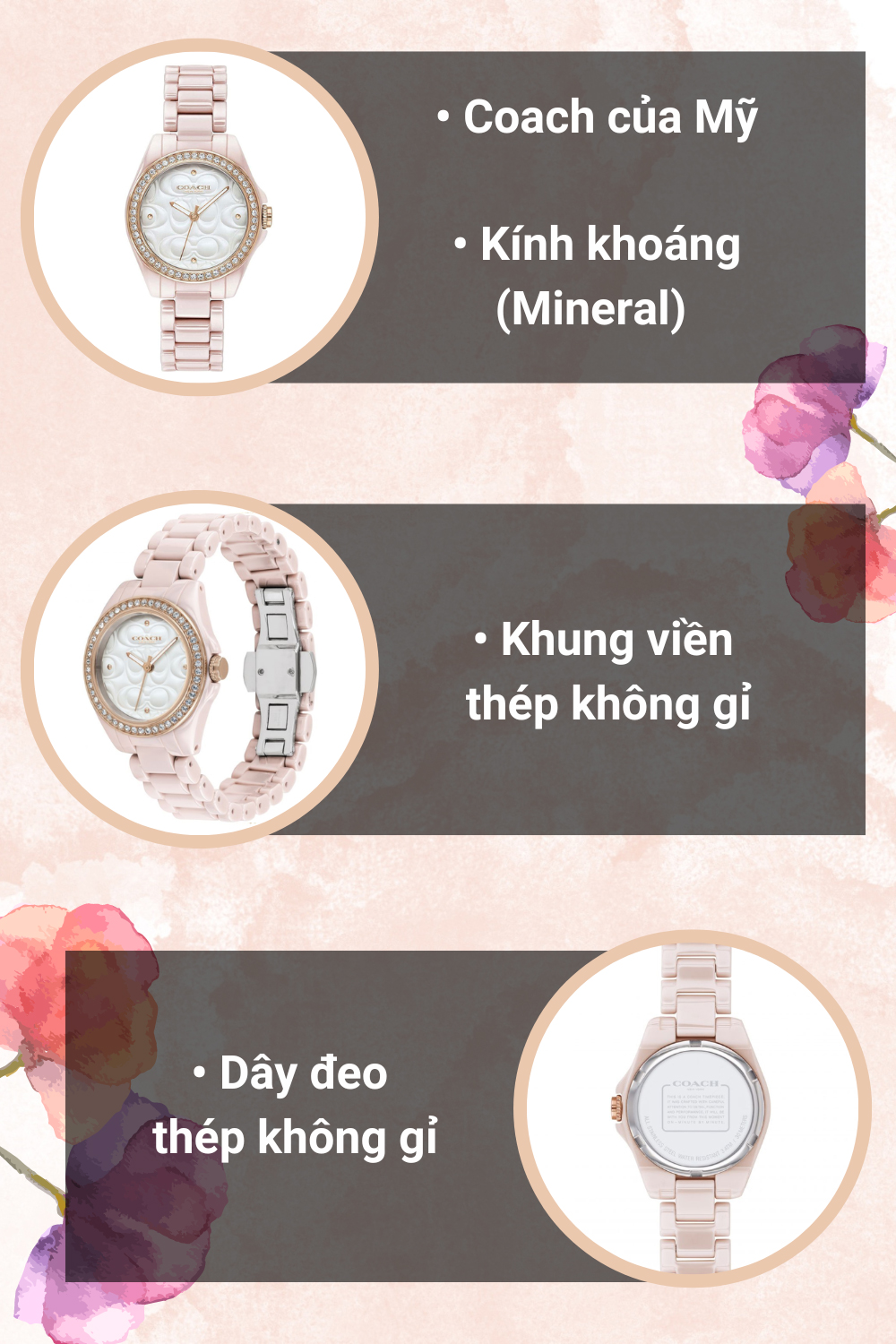- Sản phẩm đến từ thương hiệu đồng hồ Coach nổi tiếng của Mỹ, mang thiết kế thanh lịch, tinh tế