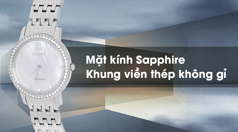 - Khung viền của mẫu đồng hồ Citizen nữ cứng cáp và chắc chắn, chịu lực tốt, không bị oxi hóa.