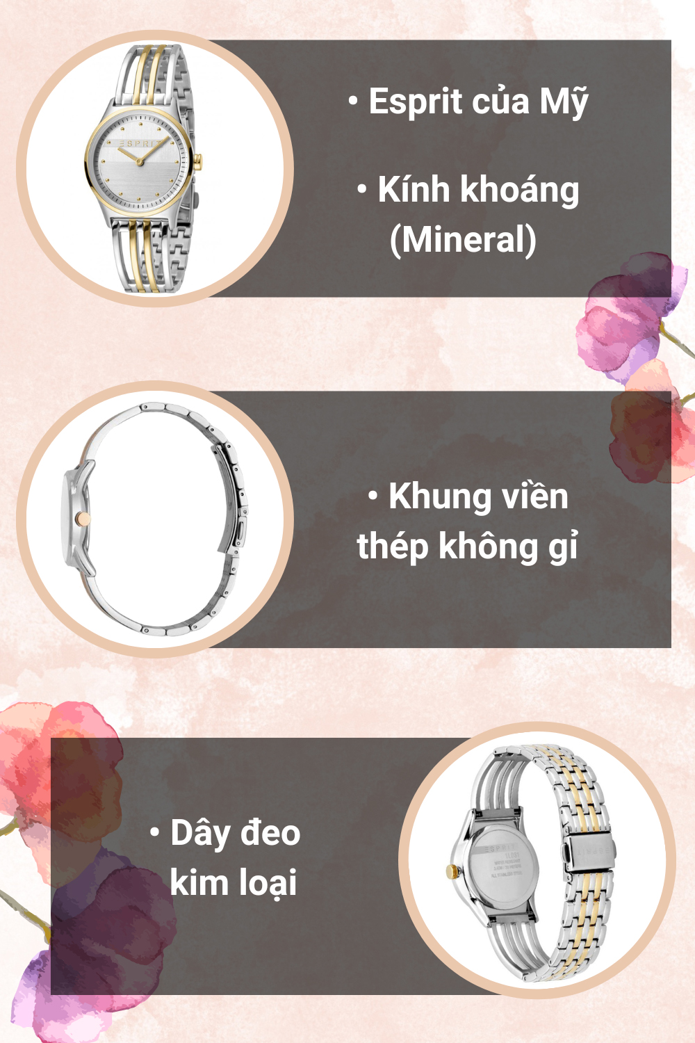 - Sản phẩm đến từ thương hiệu đồng hồ Esprit của Mỹ mang nét đẹp sang trọng