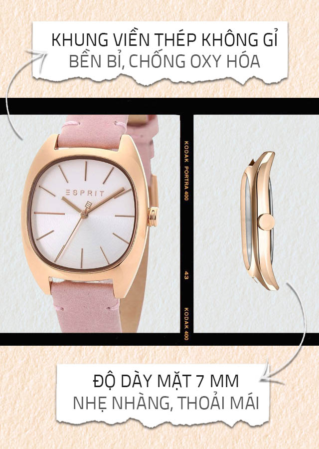 - Với tông màu hồng nữ tính và trẻ trung, đồng hồ Esprit của Mỹ đã gây ấn tượng mạnh cho phái đẹp