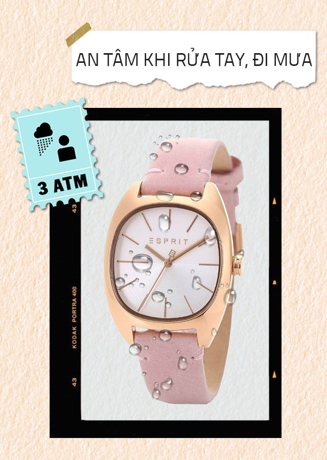 - Hệ số chống nước 3 ATM đeo được cả khi rửa tay và đi mưa nhỏ mà không sợ nước tràn vào bộ máy. Lưu ý rằng, không sử dụng khi đi tắm, bơi lội và lặn