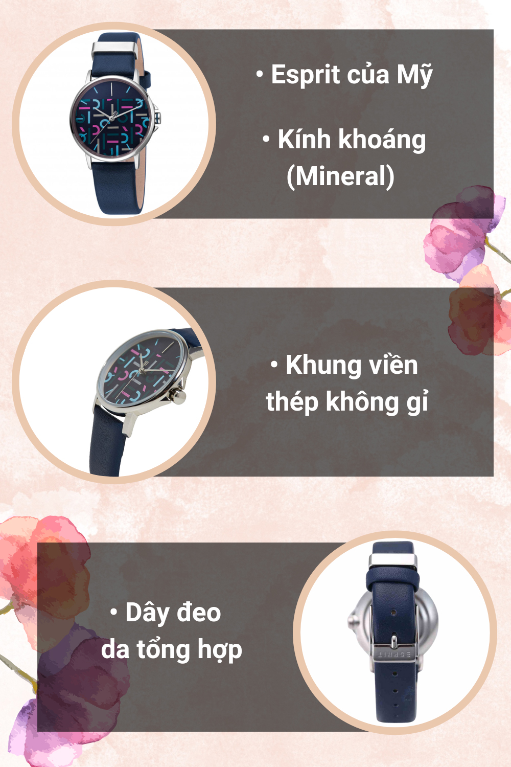 - Là thương hiệu nổi tiếng của Mỹ, chiếc đồng hồ Esprit phiên bản xanh dương trẻ trung phù hợp với cô nàng năng động