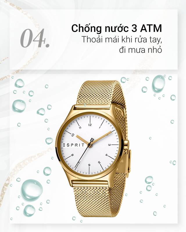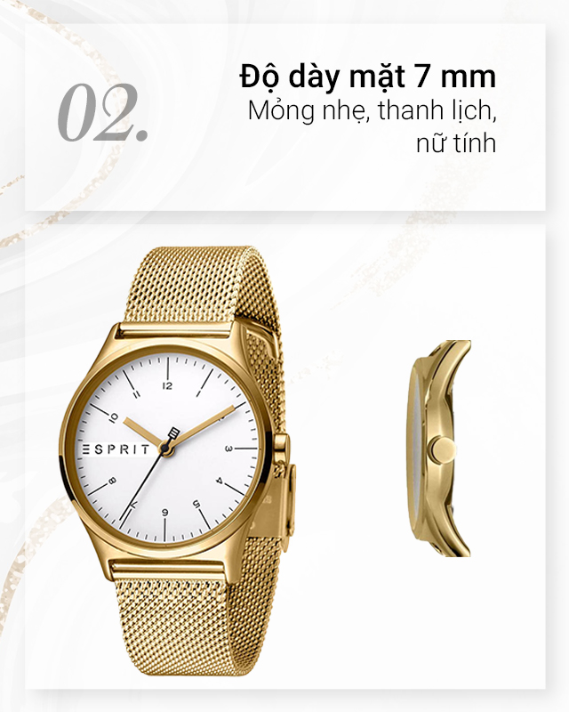 - Đồng hồ Esprit đến từ Mỹ, mang sắc vàng sang trọng cùng kiểu dáng đơn giản tinh tế