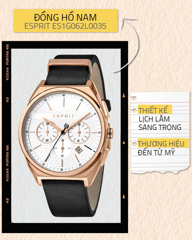 - Có xuất xứ từ Mỹ, đồng hồ Esprit có thiết kế sang trọng, nam tính