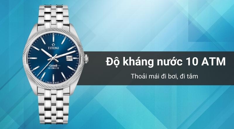 - Với hệ số chống nước 10 ATM, người dùng hoàn toàn có thể mang đồng hồ khi bơi lội, tắm hay đi dưới mưa mà không lo hư hỏng. Tuy nhiên, tránh mang đồng hồ theo khi đi lặn