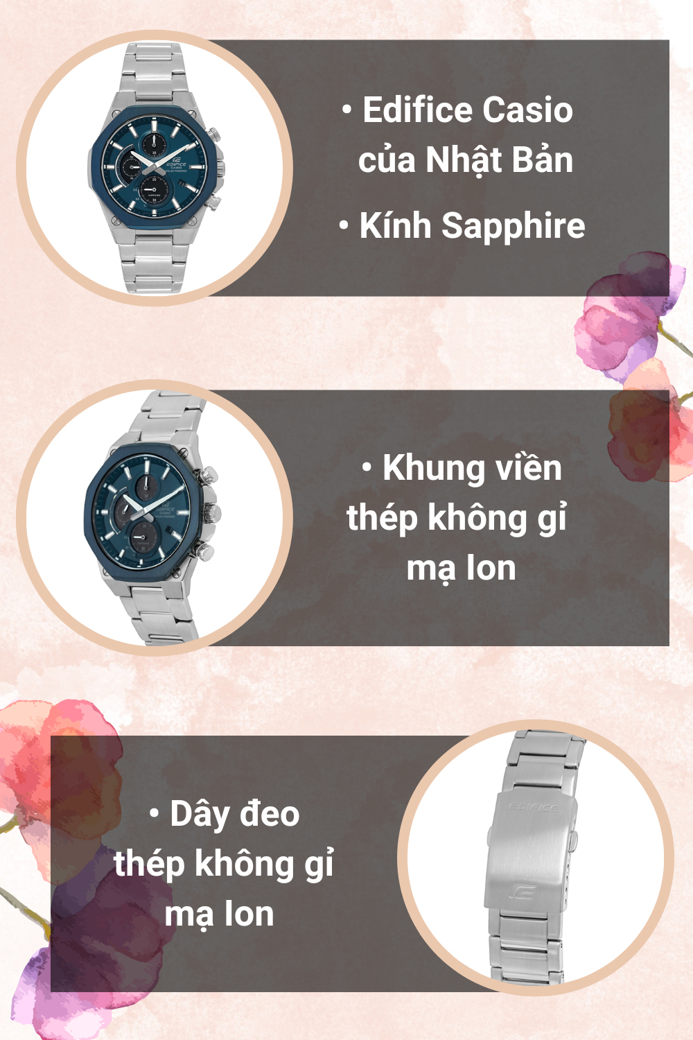 - Edifice Casio là một dòng của đồng hồ Casio, gây ấn tượng bởi thiết kế trẻ trung, hiện đại pha chút lịch lãm, cổ điển giúp đồng hồ trở nên sang trọng, được giới doanh nhân đặc biệt ưa chuộng.
