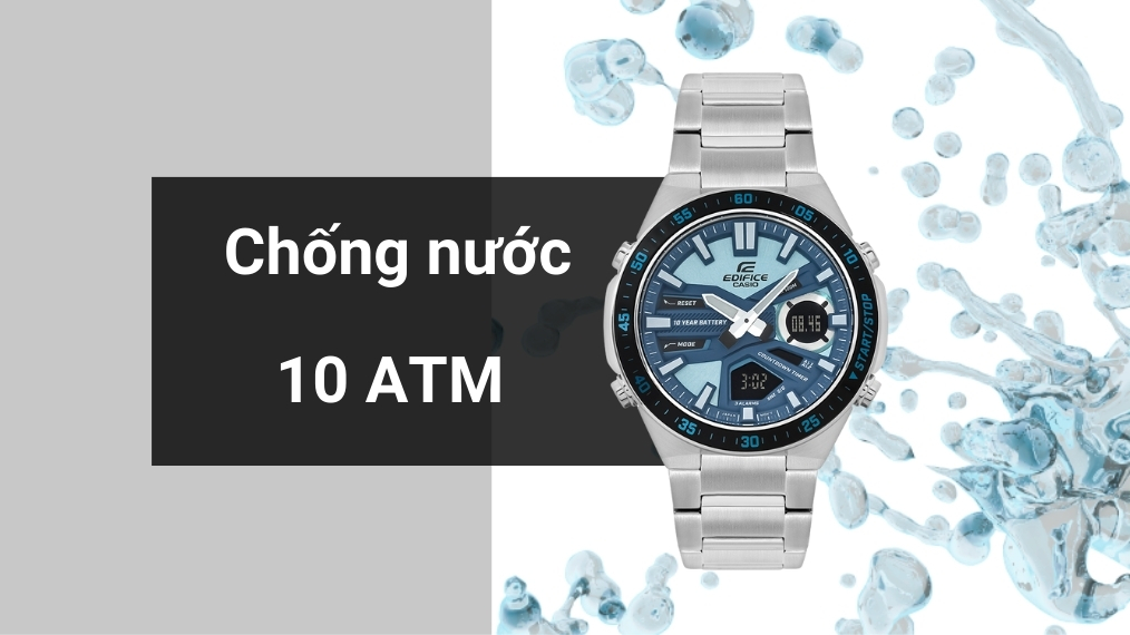 Đồng hồ Edifice được trang bị với hệ số chống nước - 10 ATM, giúp bạn tự tin sử dụng trong các sinh hoạt hàng ngày như rửa tay, đi tắm, đi mưa và thậm chí bơi lội. Tuy nhiên, để bảo vệ đồng hồ và đảm bảo an toàn, bạn không nên đeo khi lặn và không vặn các nút trong quá trình sử dụng dưới nước.