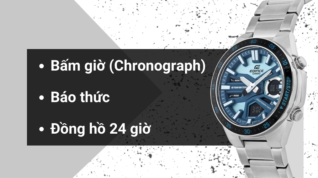 • Bên cạnh vẻ ngoài thu hút thì chiếc đồng hồ này cũng được tích hợp với rất nhiều tiện ích hữu dụng như: báo thức, bấm giờ (Chronograph), bấm giờ đếm ngược, giờ thế giới, kim dạ quang,... giúp người dùng tổ chức và quản lý thời gian hợp lý cả trong điều kiện thiếu sáng.