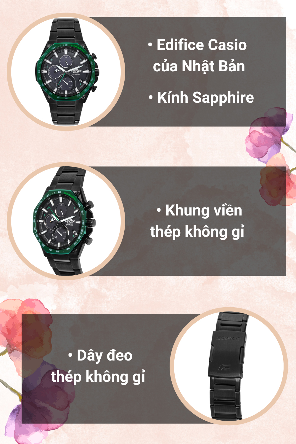 - Edifice Casio là một dòng của đồng hồ Casio, gây ấn tượng bởi thiết kế trẻ trung, hiện đại pha chút lịch lãm, cổ điển giúp đồng hồ trở nên sang trọng, được giới doanh nhân đặc biệt ưa chuộng.
