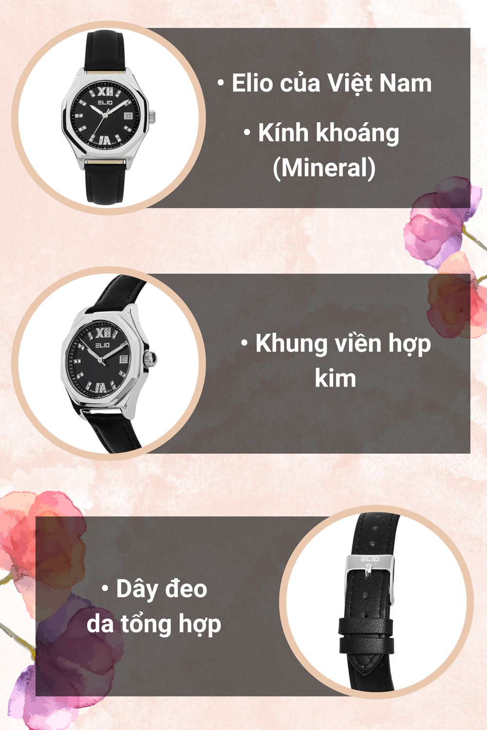 - Đồng hồ Elio với kiểu dáng, mẫu mã năng động, trẻ trung phù hợp với mọi lứa tuổi, đồng thời đồng hồ Elio còn mang vẻ đẹp sang trọng, lịch lãm. Đặc biệt đồng hồ Elio còn sử dụng bộ máy của Nhật Bản với chất lượng và độ bền cao.