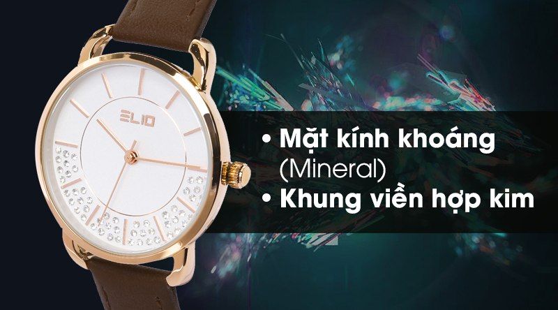 - Mặt kính đồng hồ Elio nữ có độ trong suốt và độ cứng cao, hạn chế trầy xước khi va chạm nhẹ.