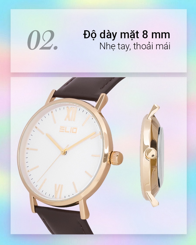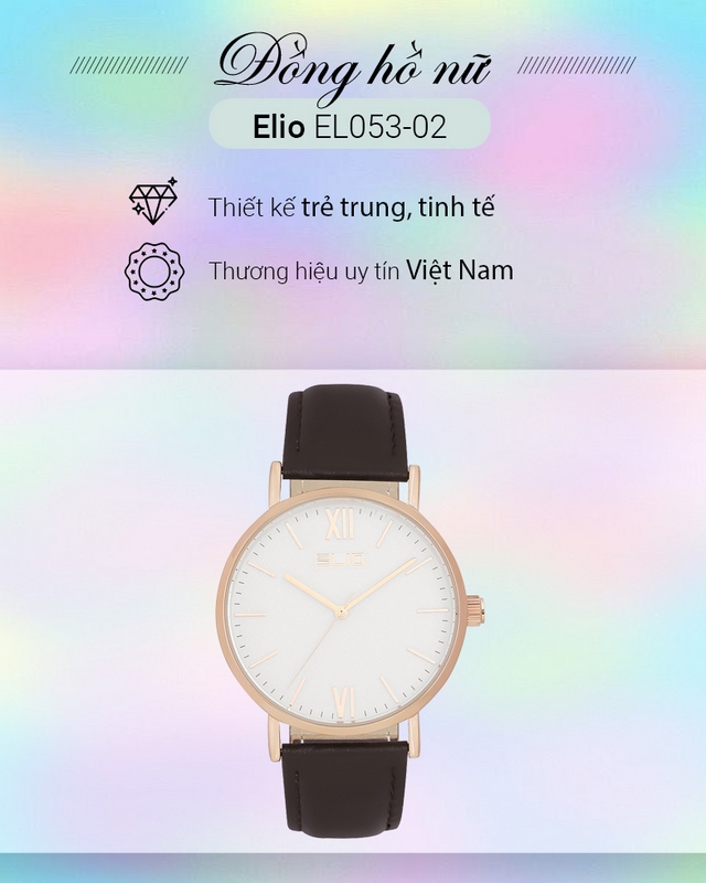 Đồng hồ Nữ Elio EL053-02 với thiết kế đơn giản, trẻ trungĐồng hồ Nữ Elio EL053-02 có mặt kính khoáng trong suốt, chống trầy tốtĐồng hồ Nữ Elio EL053-02 có độ dày mặt chỉ 8 mmĐồng hồ Nữ Elio EL053-02 sở hữu dây đeo êm nhẹ, ôm tay tốtĐồng hồ Nữ Elio EL053-02 có độ chống nước 3 ATMĐồng hồ Nữ Elio EL053-02 có khung viền cứng cáp