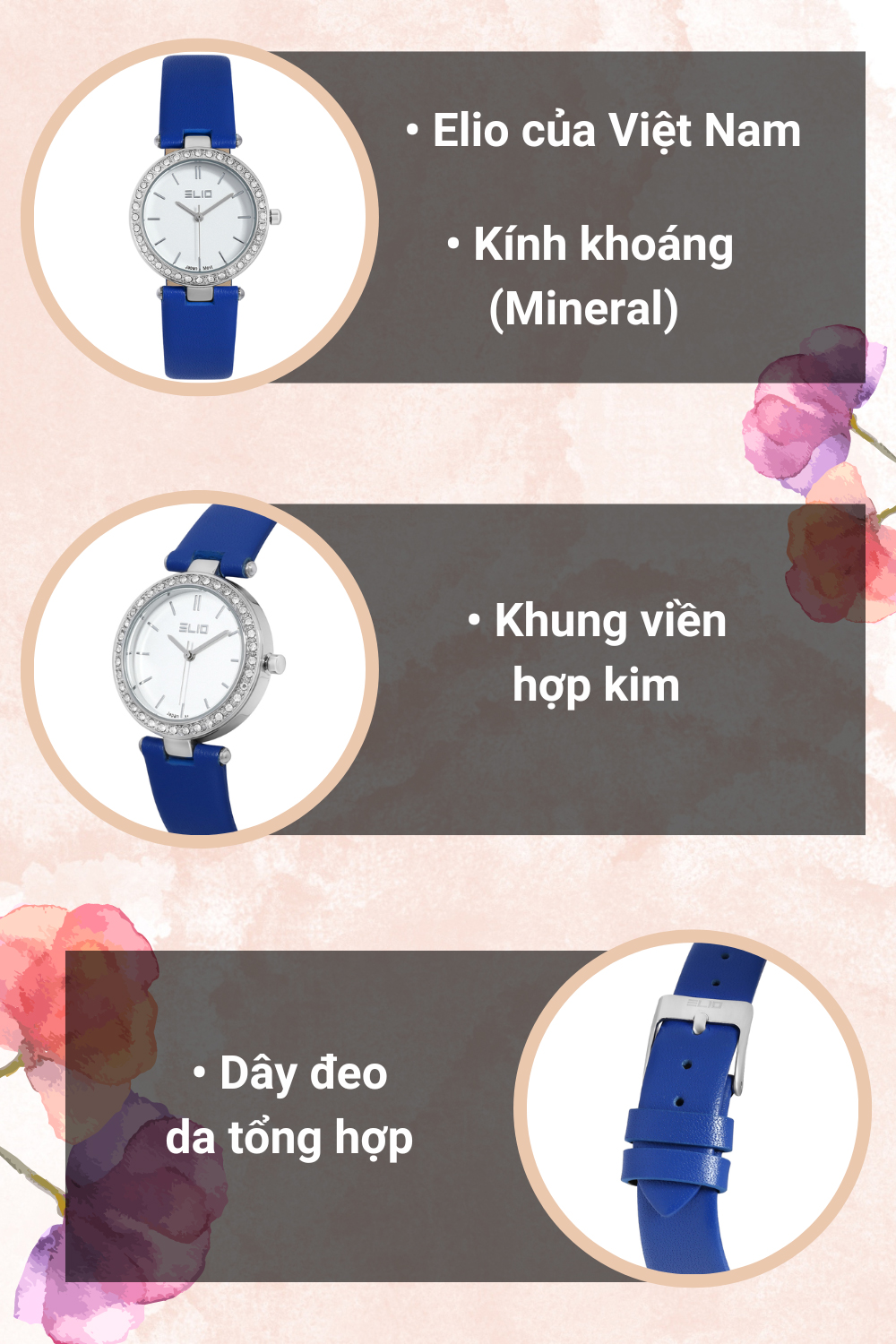 - Đồng hồ Elio với kiểu dáng, mẫu mã năng động, trẻ trung phù hợp với mọi lứa tuổi, đồng thời đồng hồ Elio còn mang vẻ đẹp sang trọng, lịch lãm. Đặc biệt đồng hồ Elio còn sử dụng bộ máy của Nhật Bản với chất lượng và độ bền cao.