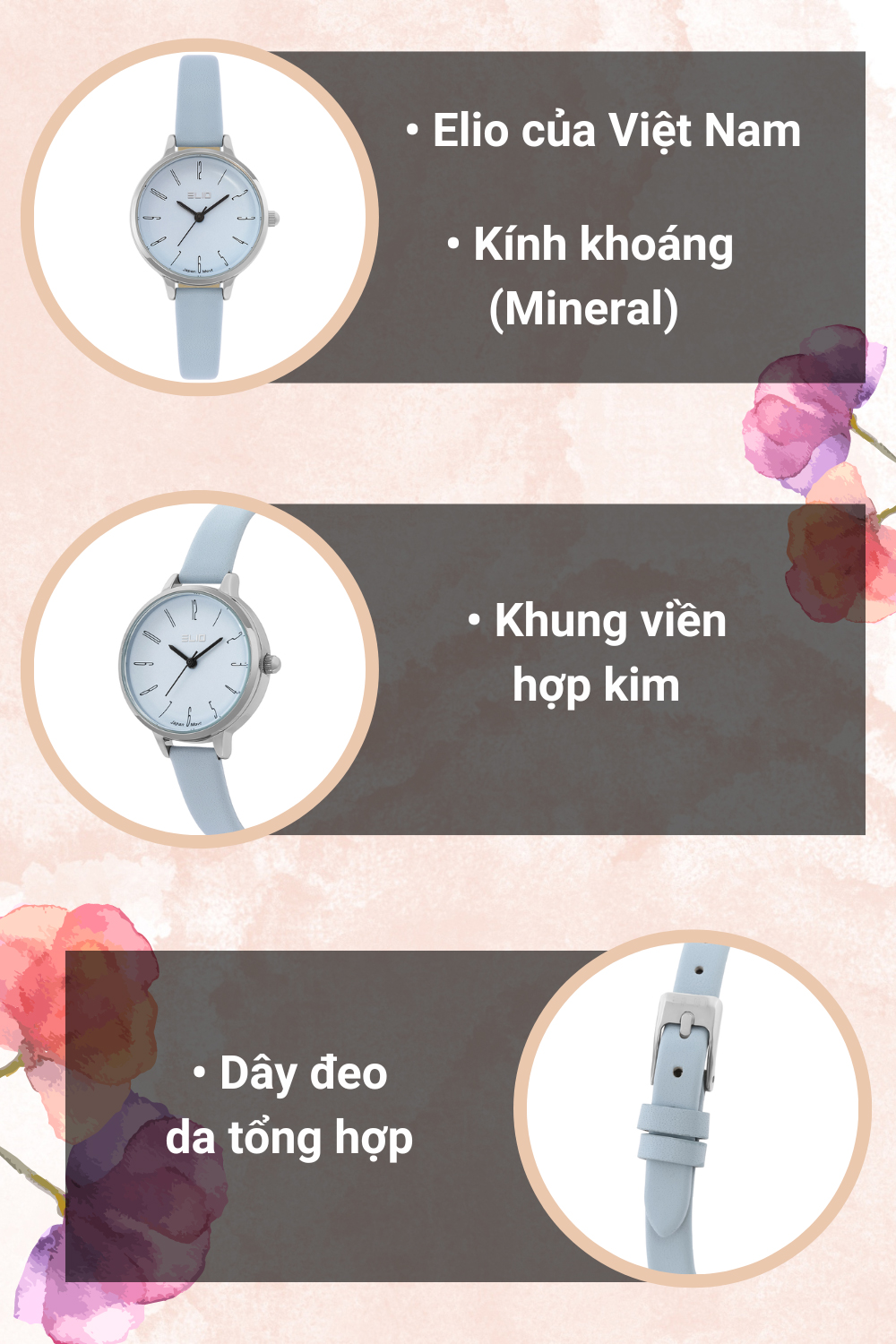 - Đồng hồ Elio với kiểu dáng, mẫu mã năng động, trẻ trung phù hợp với mọi lứa tuổi, đồng thời đồng hồ Elio còn mang vẻ đẹp sang trọng, lịch lãm. Đặc biệt đồng hồ Elio còn sử dụng bộ máy của Nhật Bản với chất lượng và độ bền cao.