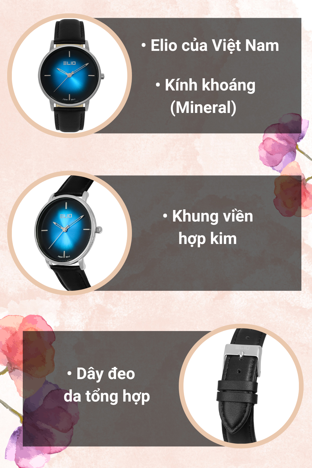 - Đồng hồ Elio với kiểu dáng, mẫu mã năng động, trẻ trung phù hợp với mọi lứa tuổi, đồng thời đồng hồ Elio còn mang vẻ đẹp sang trọng, lịch lãm. Đặc biệt đồng hồ Elio còn sử dụng bộ máy của Nhật Bản với chất lượng và độ bền cao.