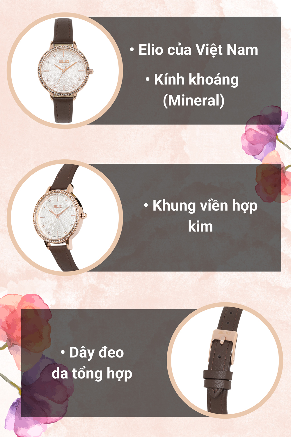 • Đồng hồ Elio 32 mm Nữ EL125-03 của thương hiệu Elio tại Việt Nam, thiết kế nổi bật và thanh lịch, đáp ứng nhu cầu của nhiều quý cô.