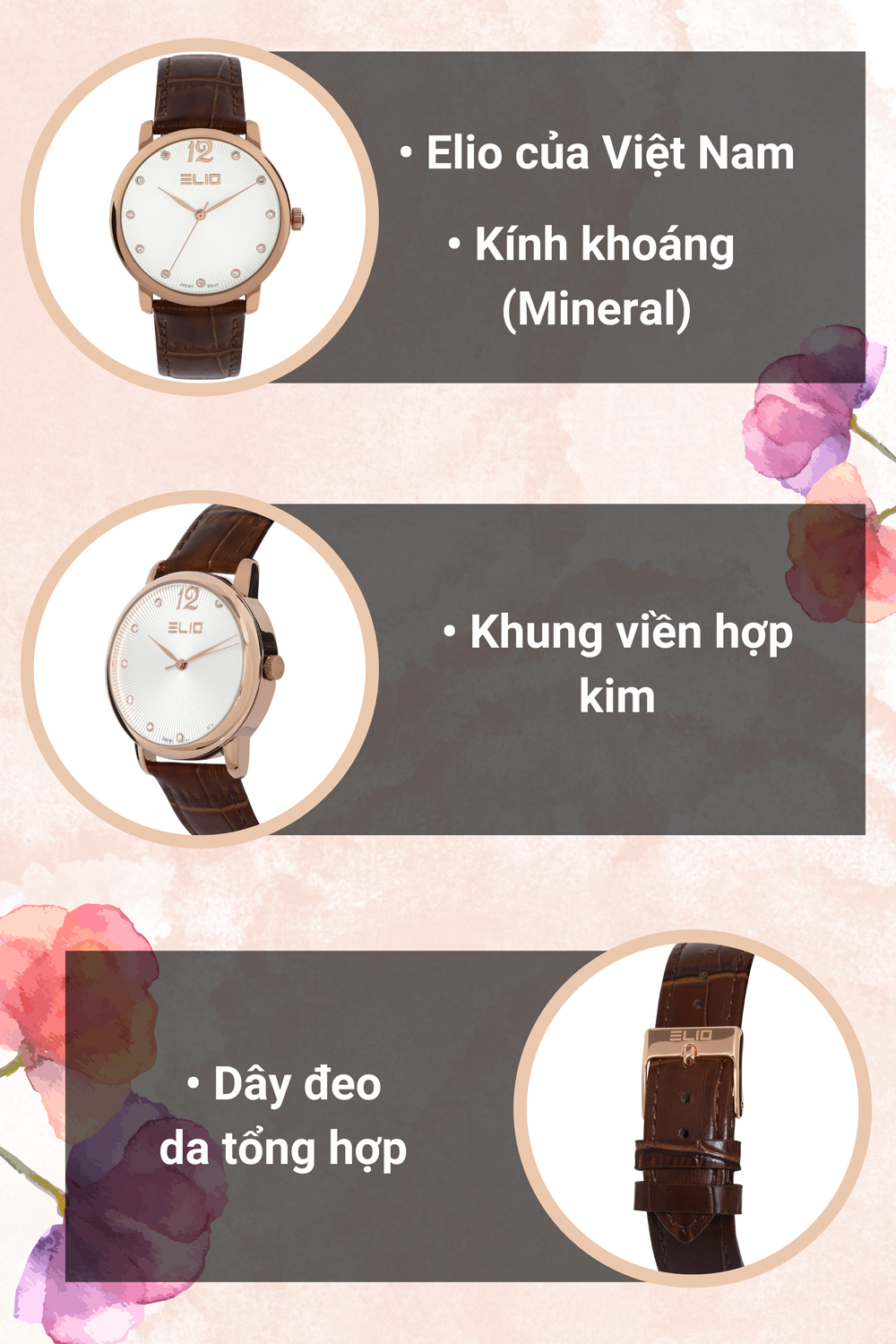 - Đồng hồ Elio với kiểu dáng, mẫu mã năng động, trẻ trung phù hợp với mọi lứa tuổi, đồng thời đồng hồ Elio còn mang vẻ đẹp sang trọng, lịch lãm. Đặc biệt đồng hồ Elio còn sử dụng bộ máy của Nhật Bản với chất lượng và độ bền cao.
