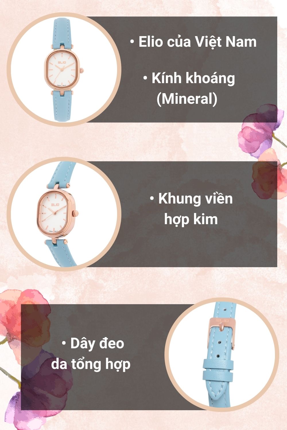 - Đồng hồ Elio với kiểu dáng, mẫu mã năng động, trẻ trung phù hợp với mọi lứa tuổi, đồng thời đồng hồ Elio còn mang vẻ đẹp sang trọng, lịch lãm. Đặc biệt đồng hồ Elio còn sử dụng bộ máy của Nhật Bản với chất lượng và độ bền cao.