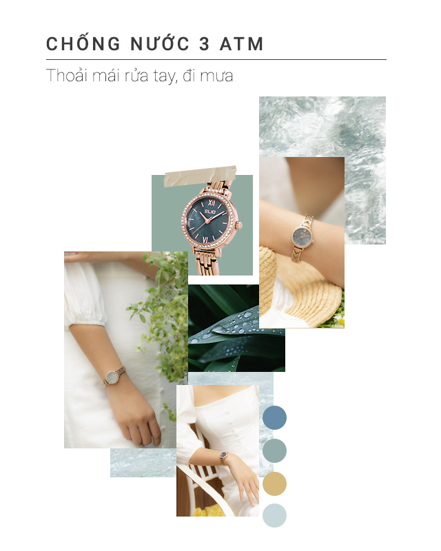 - Thoải mái đeo mẫu đồng hồ nữ này khi đi mưa, rửa tay nhờ có thông số chống nước 3 ATM, không mang khi tắm, bơi, lặn