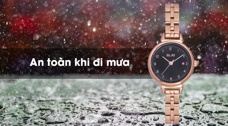 - Hệ số chống nước 3 ATM, yên tâm đeo mẫu đồng hồ nữ này khi đi mưa, rửa tay, không mang khi tắm, bơi, lặn