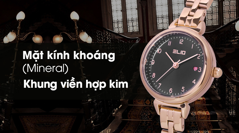 - Đồng hồ ELIO Nàng Thơ 26 mm Nữ ES052-02 có phần khung viền và dây đeo hợp kim bền bỉ, chắc chắn, chịu lực tốt