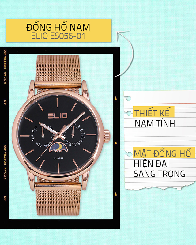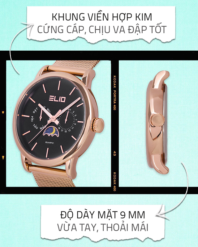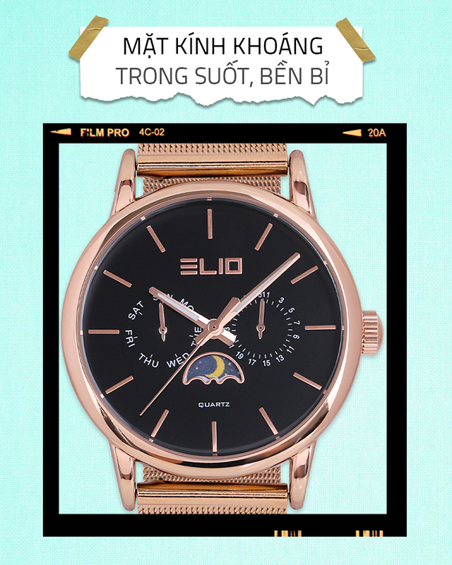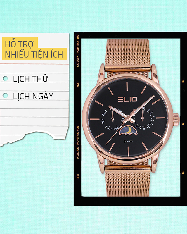 - Đồng hồ Elio với kiểu dáng, mẫu mã năng động, trẻ trung phù hợp với mọi lứa tuổi, đồng thời đồng hồ Elio còn mang vẻ đẹp sang trọng, lịch lãm. Đặc biệt đồng hồ Elio còn sử dụng bộ máy của Nhật Bản với chất lượng và độ bền cao.